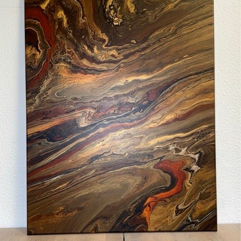 Oplev dybden i de varierede lag af maling, der giver værket en sanselig, tredimensionel kvalitet.