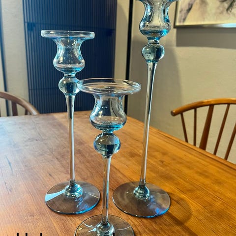 Holmegaard stage til lys med fem holdere. Fremstillet i glas og metal. Designet til at holde fem lys. Velegnet til dekoration og bordpynt.