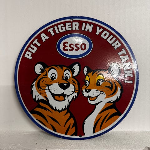 Esso Disney – rundt emailjeskilt – retro benzinskilt