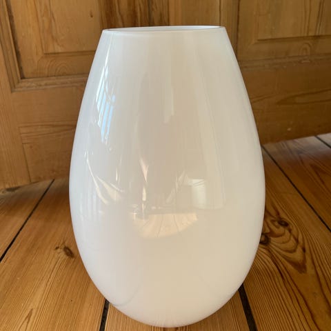 Holmegaard Cocoon vase i hvidt glas. Enkel og tidløs design uden yderligere dekorationer. 20,5 cm høj