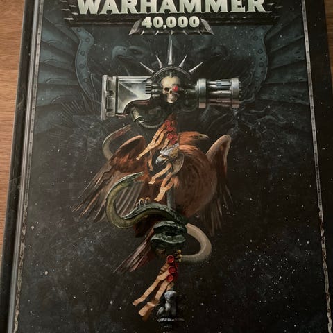 Den originale Hardback (indbundne) Regelbogen til Warhammer 40.000, 4. Udgave. Denne udgave blev udgivet i 2004 og er et essentielt samlerobjekt for enhver veteran eller entusiast af spillet.