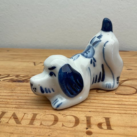 Sød lille hund der sidder ved et lys (bål) og varmer sig.