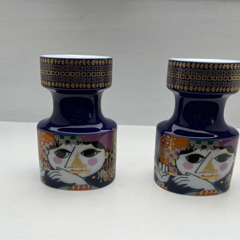 Eksklusive Bjørn Wiinblad lysestager pålagt fire slags guld.