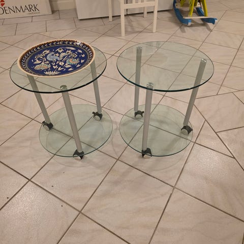 Kvadratiske sofaborde i glas med hjul