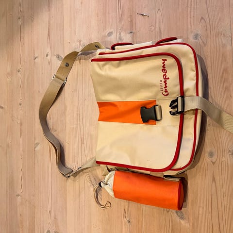 Pusletaske fra Herschel i marineblå. Der medfølger pusleunderlag. Pusleunderlaget er misfarvet indeni, men er forsøgt vasket i vaskemaskine.