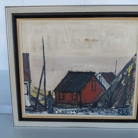 Malerier, Pia Bro, motiv: Huse, Olie på lærred. 2 stk.