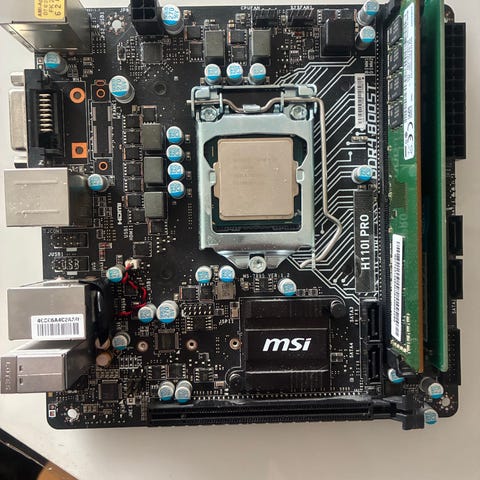 MSI B365M PRO-VDH bundkort med Intel Core i7-processor monteret. Bundkortet har DDR4 Boost teknologi og flere tilslutningsmuligheder inklusive HDMI, USB 3.0 og lydporte.