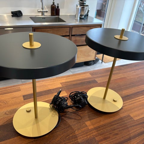 Designer Luigi Vittorio Cittadini har designet disse flotte lamper for Umage. Glasset er mundblæst opalglas (håndlavet) og stamme/fod er i børstet messing. Højde inklusive skærm er 53 cm. Butiksprisen ligger på Kr. 2.600 pr. lampe. Bemærk, vores pris er for begge lamper. Kan afhentes på vores adresse i Nyborg, tæt ved motorvejen. Levering til adresse er også mulig, mod betaling. Kontakt mig gerne på mobil 29990387 for nærmere.
