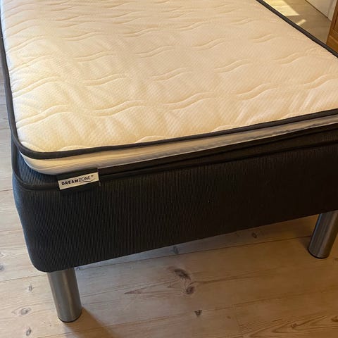 Sælger denne næsten helt ny enkeltseng/boksmadras/boxmadras, som kun er blevet brugt få gange under uddannelse, den fremstår i perfekt stand uden tegn eller mærker osv. Sengen blev købt fra Ilva for to år siden for 3000 kr. + sølv runde ben (de medfølger her self)