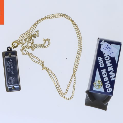 The Hohner Band mundharmonika med et etui. Mundharmonikaen har metal- og plastdele og er designet til at blive spillet med hænderne. Den leveres i en æske med klassisk design.