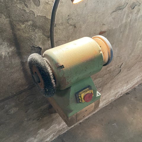 Maskinen er monteret på et krydsbord til værktøjsslibning.