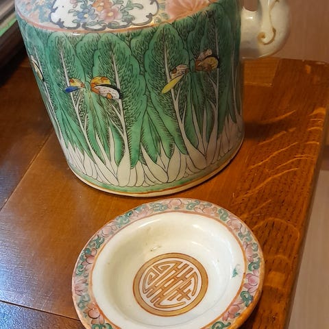 kinesisk blå og hvid te-caddy i porcelæn.