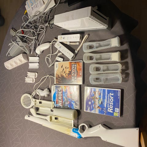 Komplet Nintendo Wii pakke med konsol, controller, Nunchuck & 1 spil. Alt er testet og virker, konsol er nulsillet.
