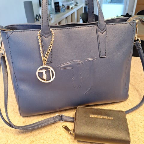 Pung, Trussardi Jeans, God men brugt sort stor pung med plads til masser af kort.