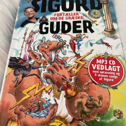 Sigurd fortæller om de græske guder bog med tilhørende MP3 CD. Indeholder fortællinger om de græske guder og mytologi. Bogen er illustreret og leveres med en CD, der indeholder oplæsning af historierne.