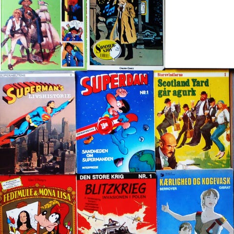 Her sælges 12 tegneseriealbums - priser fra 15 kr.