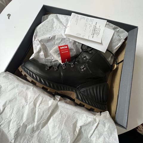 ECCO støvler i størrelse 42. Farven er sort. Støvlerne er lavet af læder og har snørelukning. Sålerne er gummibelagte for bedre greb. Velegnet til dagligt brug.