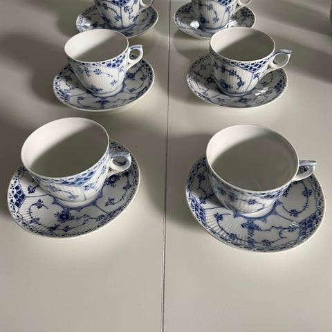 Royal Copenhagen Sort Musselmalet Halvblonde Kop med Underkop (20 cl)
