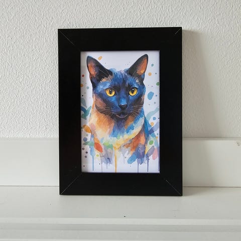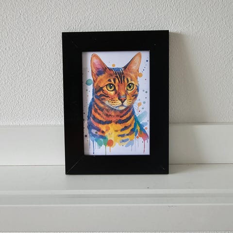 Billede af hvid kat med watercolor art.