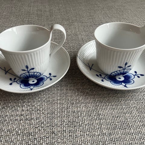 Royal Copenhagen Blå Mega Riflet Højhankskop med Underkop (25 cl)
