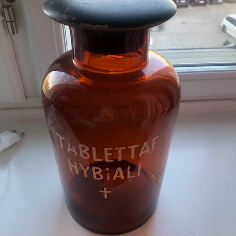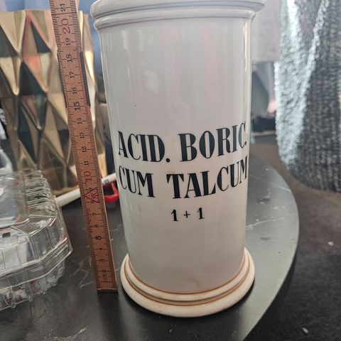 Smukt stort gammelt apotekerglas / krukke med låg.