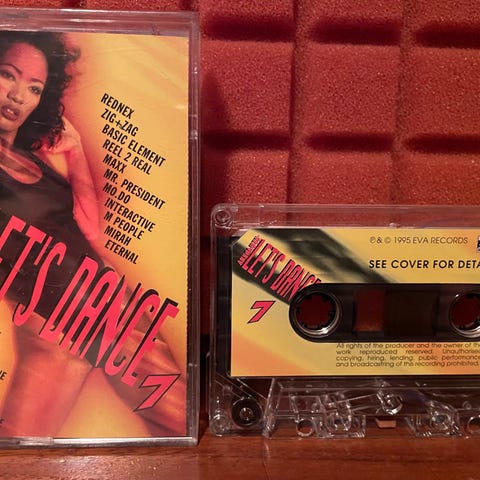 Absolute Let's Dance Mix kassettebånd med flere kunstnere og sange inden for dance-genren. Indeholder et udvalg af tracks fra forskellige artister, optaget på en standard kassettebånd.