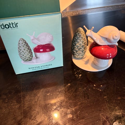 Denne hyggelige Winter Stories Kronelysestage fra Dottir har et motiv af en lille snegl på toppen af en rød svamp. Den lille nysgerrige snegl bliver belyst af kronelyset som vil kaste et varmt skær ned over det lille landskab.