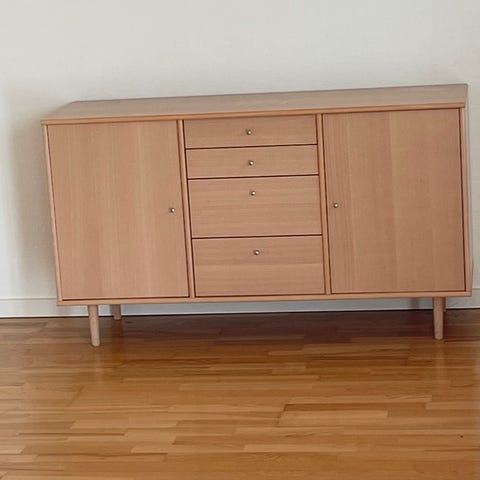 Mistral skænk, ben i børstet stål. Enkelte små ridser.
