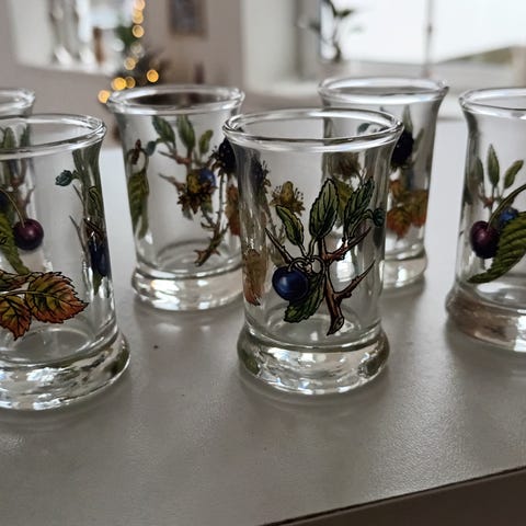 6 stk Holmegaard dramglas i meget flot stand. 2 af dem er ens. ellers er de forskellige.