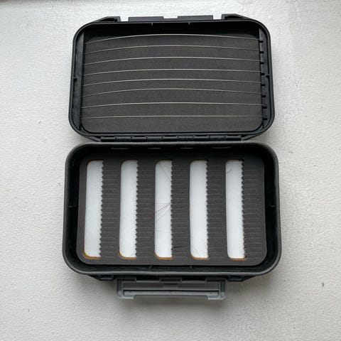 Vandtæt flueboks med 22 ubrugte fluer.