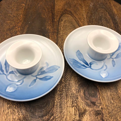 2 smukke Bing & Grøndahl, lysestage med flettet hjerte på den ene side og klokke på den anden. H: 7,5 cm.