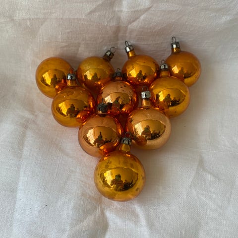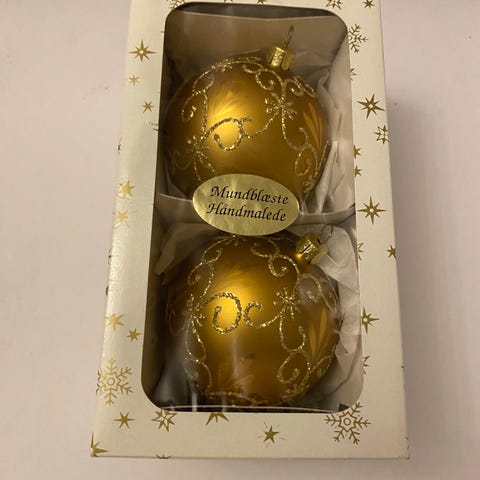 Vintage julepynt, guld kugler / glaskugler i æske