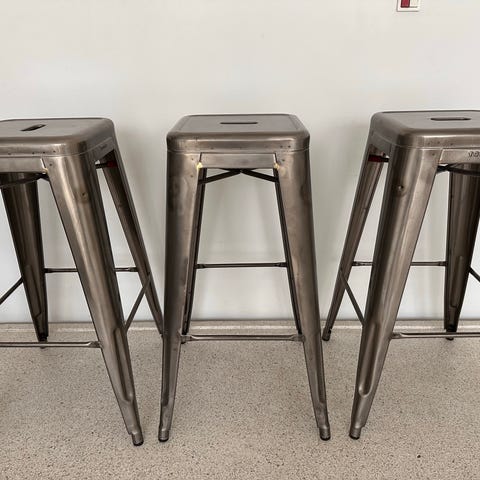 Metal rød malet, lettere brugs spor (Tolix) franske kopier (umuligt at se forskel)