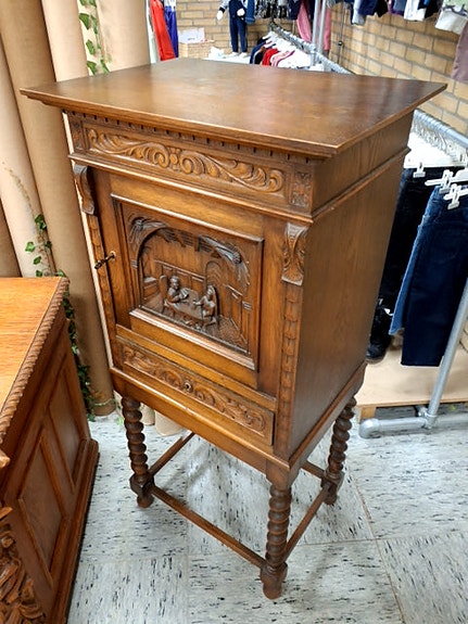 Skabet har flere skuffer og en åben hylde. Det er lavet af lys træ med glatte overflader.,Afhentes i:,Røde Kors Bellinge (461),Bemærk at mail, chat og beskeder ikke besvares, og varen skal købes på knappen "Gå til varen"