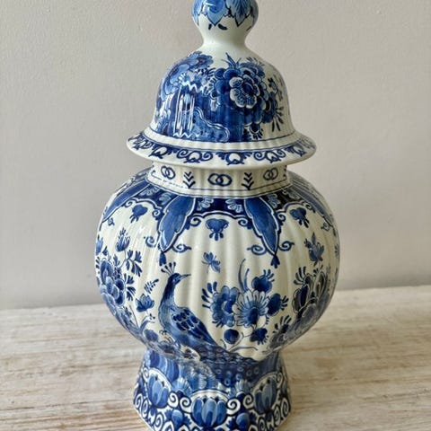 Sælent Delft blå porcelæns vase, håndmalt i Gouda, Nederlandene, 38 cm høj, 20 cm bred, 20 cm dyb, blomsterdekoration, fremragende stand med ægthedscertifikat vedlagt. Klik på den blå "gå til varen" knap, for at købe eller byde på denne vare. Den samlede pris vil blive vist inden du afgiver dit bud.