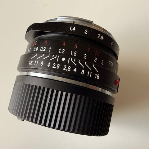 Voigtlander ULTRON F2 til Leica M med UV-filter og solblændelåg, fuldt funktionsdygtig i fremragende stand.