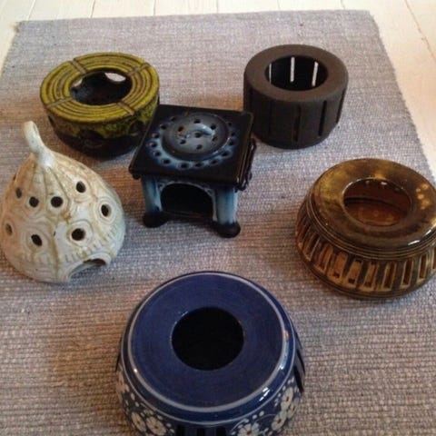 Der kan henvises til andre lignende effekter, bla flere Kähler keramik te-varmere i fede farver/glasur samt en del i messing og tin og Nogle ses under