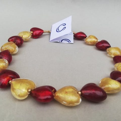 Glas halskæde i Murano-glas med perler i guld og sølv, med krystal og transparente farver, indeholdende smeltet lamina og 925 sølv.