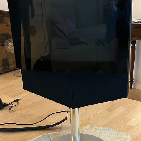 Et af de smukkeste fjernsyn nogensinde produceret af Bang & Olufsen! B&o BeoVision Avant 32 dvd er den nyeste version af denne model. Ultra-fladt skærm, som dengang var en virkelig teknologisk nyhed! Motoriseret drejelig base, indbygget dvd-afspiller… kort sagt det ypperste inden for teknologi! Perfekt. Da det er ultra-glansfuldt, ser det ud på billederne som om, der mangler lak på nogle dele, men det er blot refleksionen. Alt er perfekt! Et bemærkelsesværdigt funktionelt møbel! På grund af følsomheden og vægten vil eventuel forsendelse blive aftalt separat.