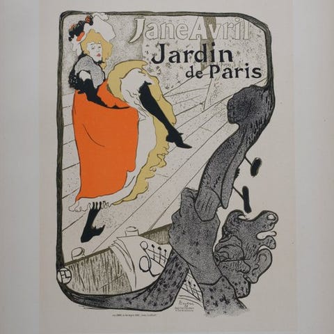- Toulouse-Lautrec (efter), autoriseret offset lithografi på kraftigt, tekstureret mat papir (ca. 300 g/m²).