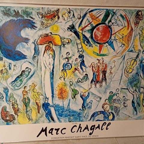Perfekt til elegante og lyse omgivelser, tilføjer varme og følelsesmæssig dybde. Ideel i stuer, studie eller rum dedikeret til kunst, hvor farverne og den visuelle poesi fra Chagall finder fuld udtryksfuldhed.