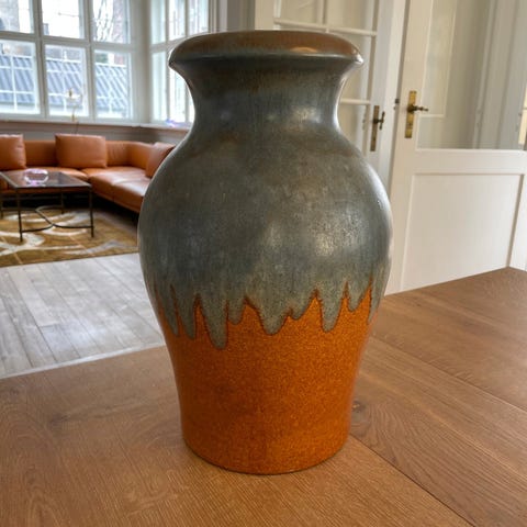 Dekorativt porcelænsvas Weimar Porzellan (Tyskland) i dyb kobaltblå med gulddetaljer, Japandi-Oriental-stil, 25 cm høj og 12 cm bred, cirka 1950–1990, vægt 3 kg. Klik på den blå "gå til varen" knap, for at købe eller byde på denne vare. Den samlede pris vil blive vist inden du afgiver dit bud.