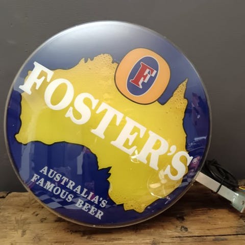 Lysende skilt i form af en Beck’s-flaske, lavet af termoforberet støbt plast, komplet med original neoninstallation, der fungerer perfekt. Objektet er blevet opbevaret med stor omhu: overfladen har kun lette brugsspor uden afblegning, revner eller deformationer, og den brillante grafik med dråbeeffekt er bevaret i sin fulde glans og er virkelig realistisk.