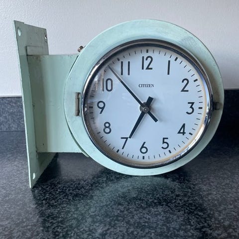 Citizen navigationsvægur, diameter 22 cm, i metalhus med glas og stål, batteridrevet elektrisk urværk med 400-dages reserve, ikke slagværk, oprindelse Japan, cirka 1980–1990, i god stand med få tegn på ældning, dimensioner 22 x 22 x 10 cm, vægt 1,2 kg, batteri ikke inkluderet, i funktion. Klik på den blå "gå til varen" knap, for at købe eller byde på denne vare. Den samlede pris vil blive vist inden du afgiver dit bud.