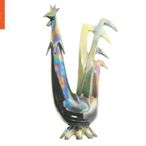 Keramisk figurine “Papugi na gałęzi” af Jema Holland, ca. 1950–1960, som viser to farverige papegøjer på en gren; glasurceramik med iriserende glans, højde 19 cm, bredde 19 cm, dybde 6,5 cm, vægt 375 g, i meget pænt vintage-tilstand uden sprækker og med få aldersrelaterede tegn synlige ved basen hvor Holland-mærket ses. Klik på den blå "gå til varen" knap, for at købe eller byde på denne vare. Den samlede pris vil blive vist inden du afgiver dit bud.