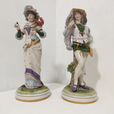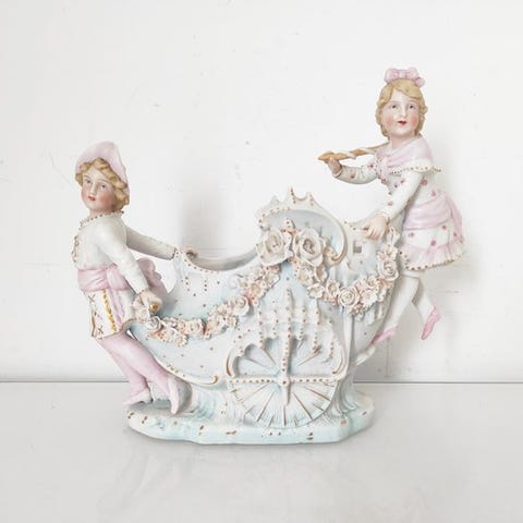 Porcelænsgruppe der skildrer Napoleon Bonaparte som holder et kort ved sin flekkede hest, bagpå mærket Scheibe-Alsbach; Tyskland (Thüringen); dateret 1925–1945; mål 23 cm længde, 22 cm højde, 10,5 cm bredde; i fremragende stand med minimale brugsspor. Klik på den blå "gå til varen" knap, for at købe eller byde på denne vare. Den samlede pris vil blive vist inden du afgiver dit bud.