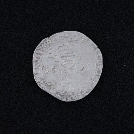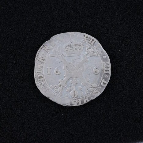 Det spanske imperium, ærkehertugerne Albert og Isabella - 1 Patagon-mønt præget i Antwerpen i 1620 under spansk styre. 2'eren er et Z og er præget over et 1-tal, som er helt synligt. Den tilhører den anden type, daterede mønter, den sjældneste i gruppen, med en stor diameter. Sølv 28,03 g. Sjælden