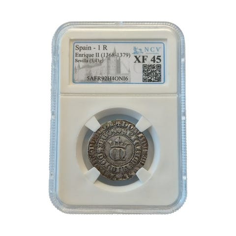 Cornado af Alfonso XI, præget i Burgos mellem 1312 og 1350, i vellón, vægt 0,84 g, ukendt tilstand uden certifikat. Klik på den blå "gå til varen" knap, for at købe eller byde på denne vare. Den samlede pris vil blive vist inden du afgiver dit bud.