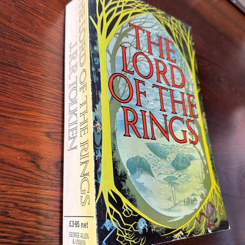 Denne femtente udgave fra 1965 af The Hobbit præsenterer J.R.R. Tolkiens tidløse eventyr i sin klassiske midt-20. århundrede form, og bevarer trofast teksten, der introducerede generationer af læsere til Middle-earth. Den indeholder Tolkiens fulde fortælling præcis som udgivet i denne periode, hvilket giver den autentiske læseoplevelse af forfatterens oprindelige litterære vision før senere redaktionelle eller designmæssige ændringer. Verket forbliver et af de grundlæggende mesterværker inden for moderne fantasy-litteratur, og kopier fra denne serie af tidlige udgaver er i stigende grad eftertragtede af samlere, fordi de afspejler den æra, hvor Tolkiens læserskare hurtigt voksede, men