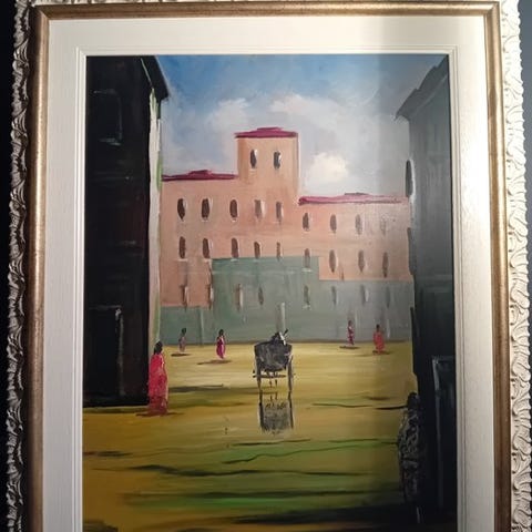 Originalt oliemaleri på lærred Paesaggio af G. Nicosia (XX), impressionistisk stil, 59 × 68 cm, fra 1940–1950, italiensk oprindelse, signeret, sælges med ramme, original edition, i discrete forhold. Klik på den blå "gå til varen" knap, for at købe eller byde på denne vare. Den samlede pris vil blive vist inden du afgiver dit bud.